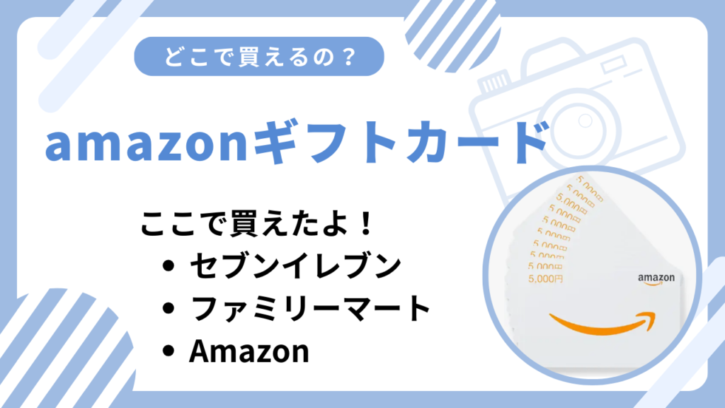 amazonギフトカードはこちらの店舗やネット通販で買えます! コンビニエンスストア イオン 家電量販店 ドラッグストア ドン・キホーテ Amazon amazonギフトカードは、セブンイレブンやファミリーマートで購入できますが、より確実に購入したいなら、Amazon... -