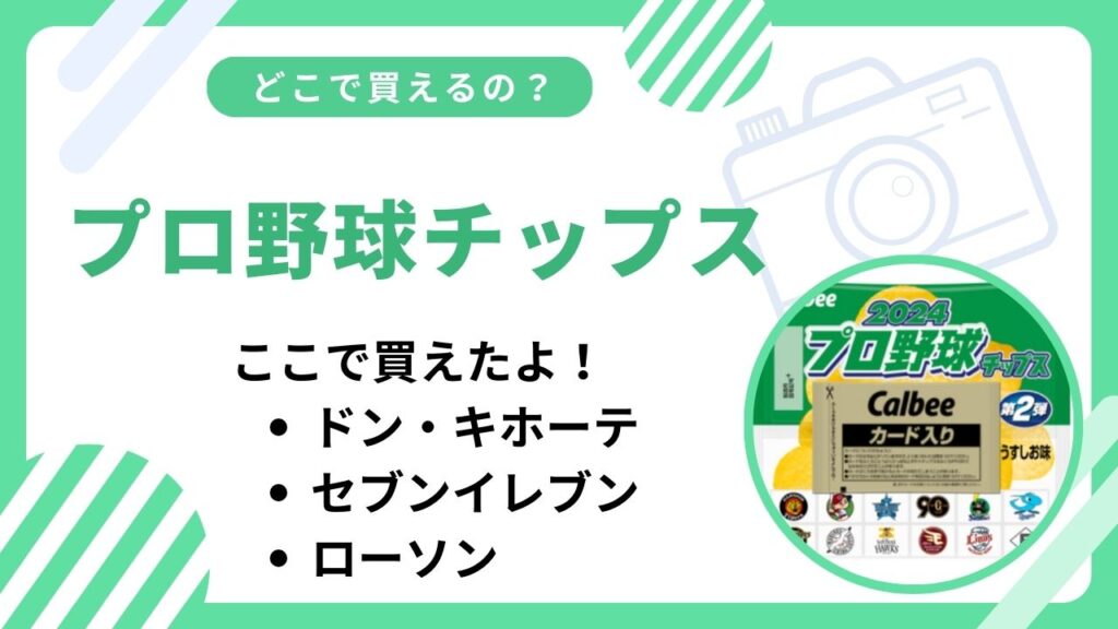プロ野球チップスはこちらの店舗やネット通販で買えます! ドン・キホーテ コンビニ(セブンイレブン・ローソン・ファミリーマート) スーパー(イオン・イトーヨーカドー) おかしのまちおか 楽天市場 Amazon Yahooショッピング カルビーマルシェ プロ野... -